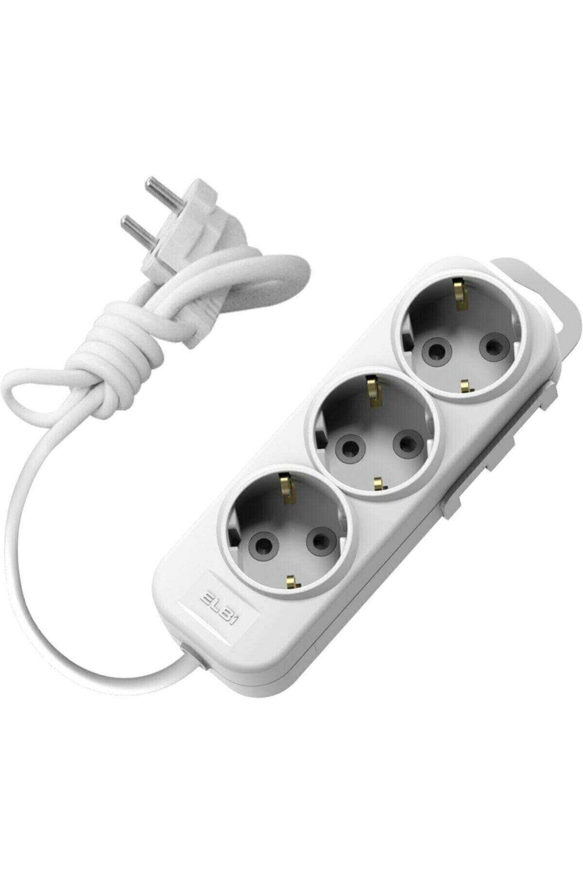 Elbi 3lü Üçlü Topraklı 2 Metre Kablolu Çocuk Korumalı Grup Priz